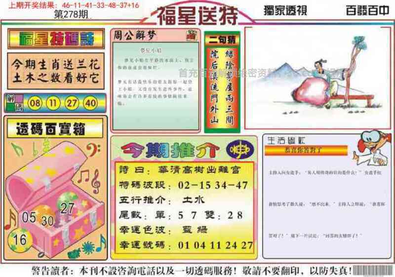 279期:吉凶两肖☣吉美+狗鼠】开:兔27中